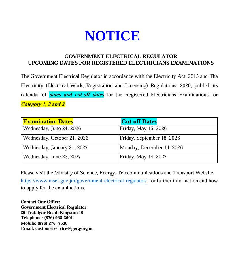 Regulating work of electrical inspectors and electricians in Jamaica. To promote safety, transparency, and accountability